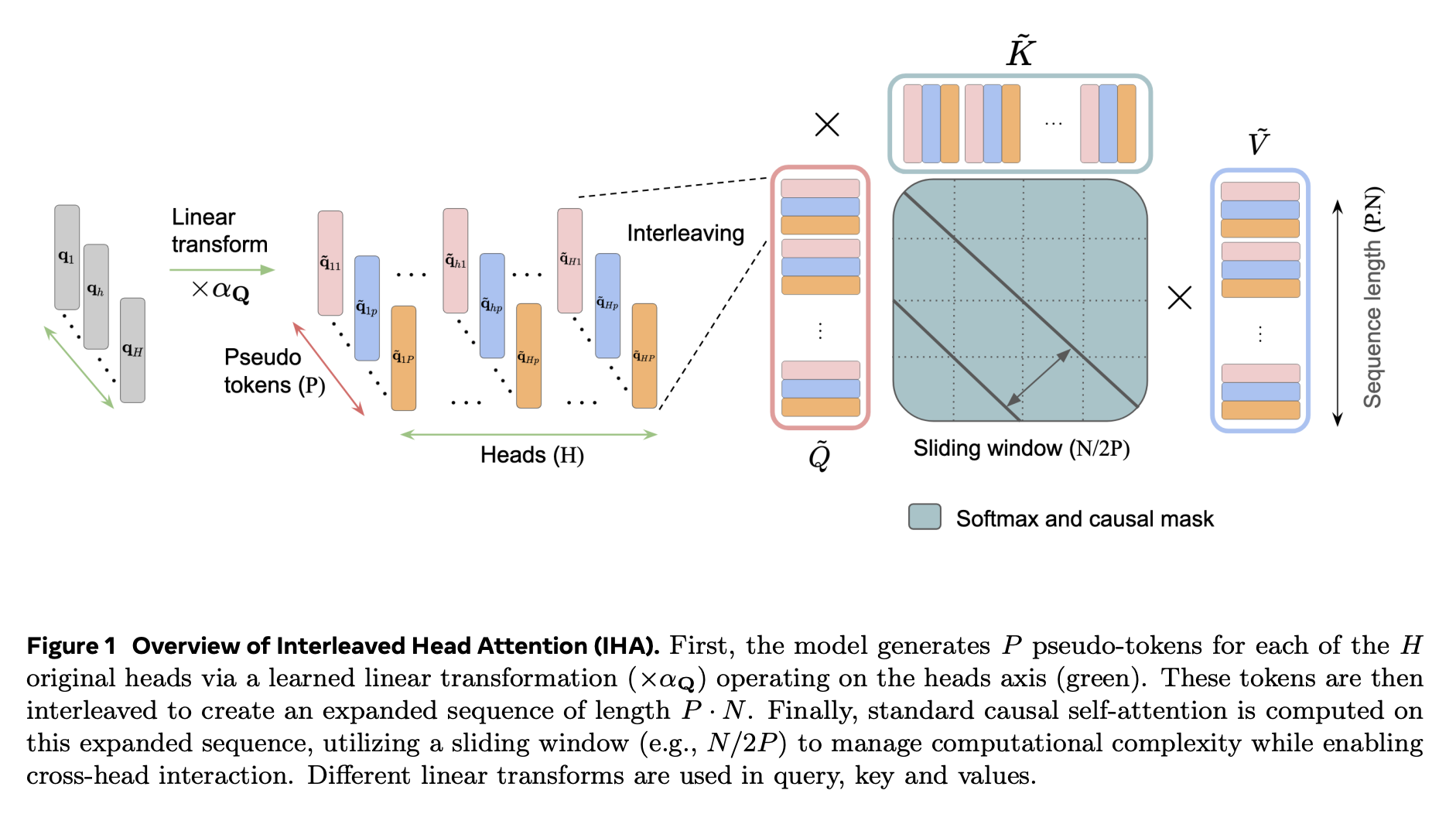 Meta社の論文。従来の Multi-Head Attention の制約を緩和することで多段推論に強くなる Interleaved Head Attention の提案。