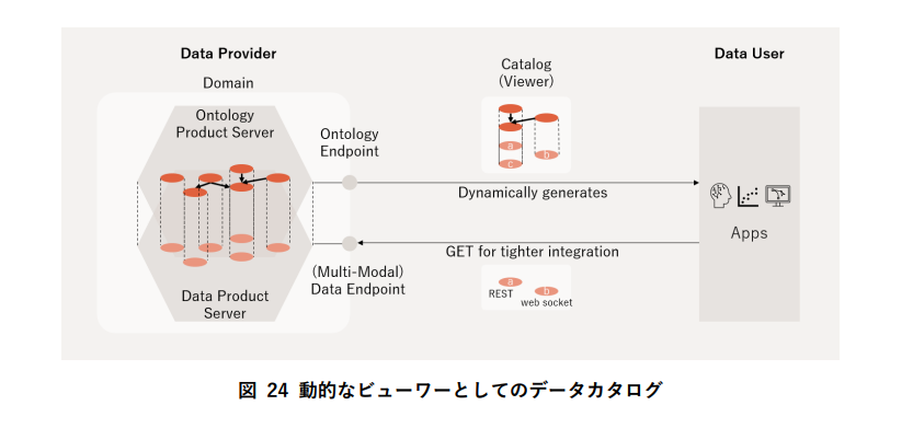 - 各ドメインはOntology Endpoint(意味の接点)とData Endpoint(データの接点)の2つを外部に公開する。