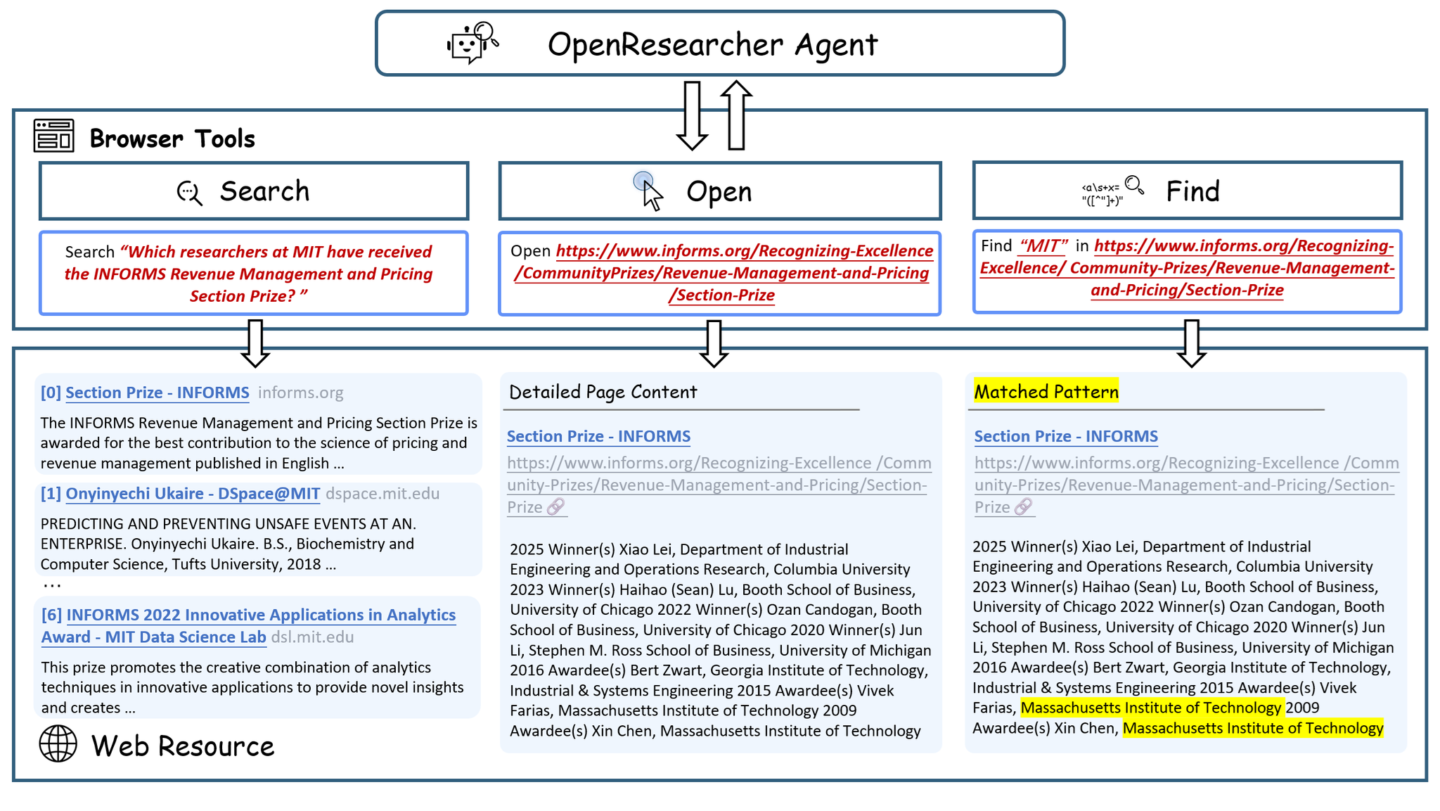 - open: URLからドキュメントの全文を取得します。これは、検索スニペットを超えてWebページを詳細に検査する人間の行動を模倣します。