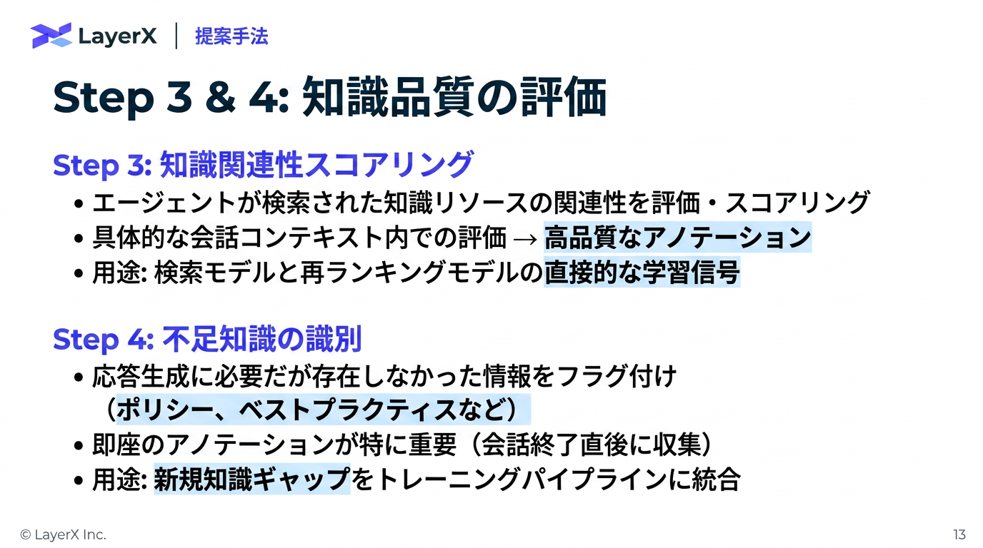 - Response Correctness: 事実の正確性と会社ポリシーとの整合性の観点から人間がチェック