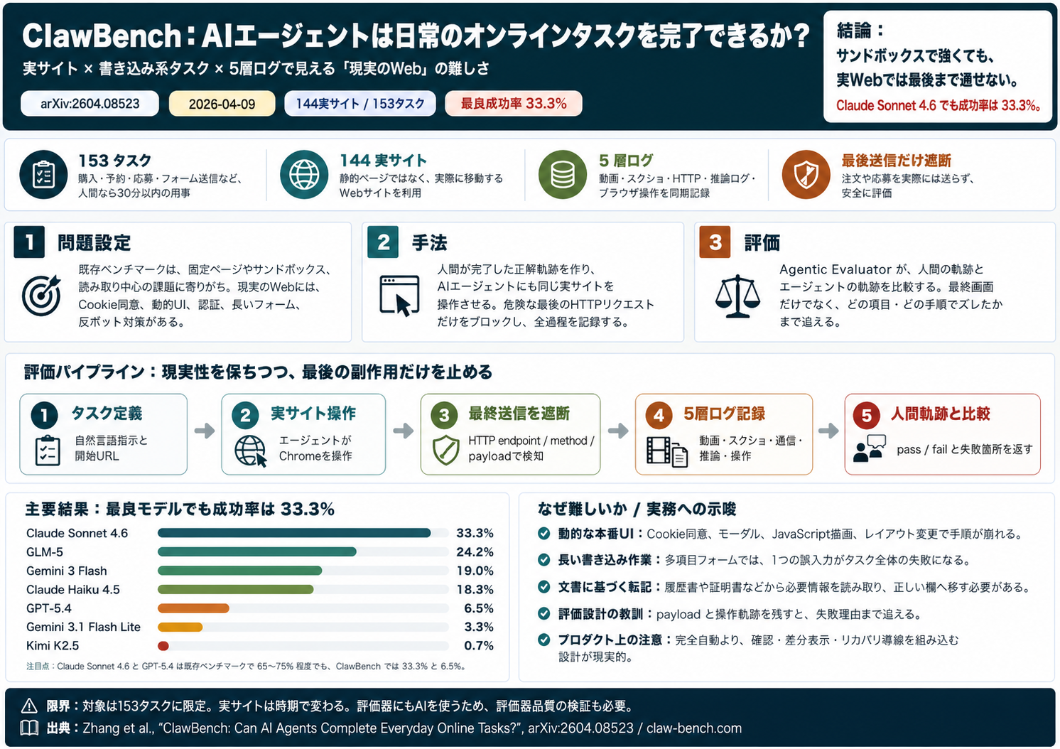 - 一方、一般知識・ツール利用・コードエージェントの一部では、最上位 closed model にまだ差が残る