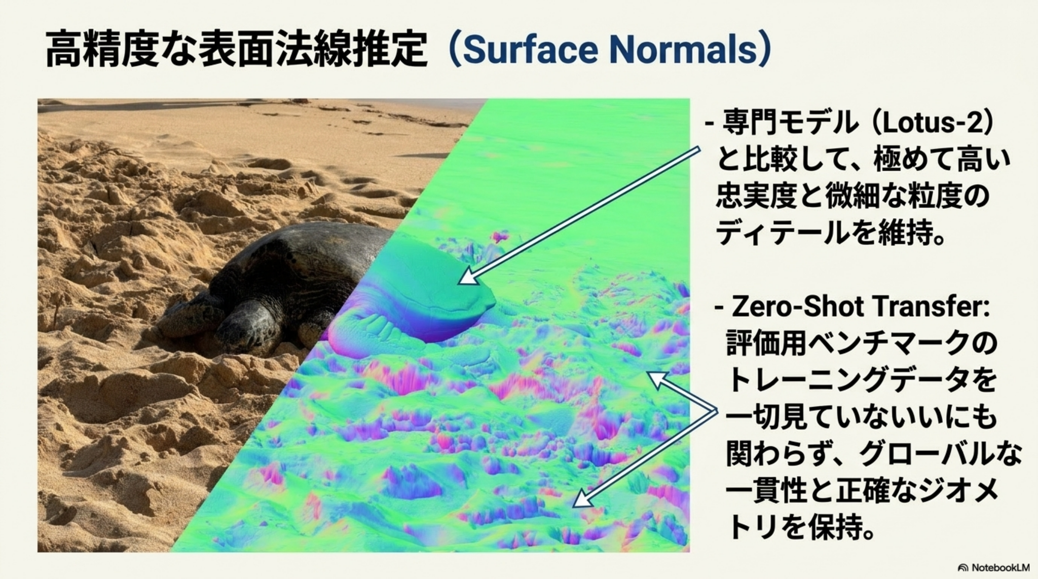 | 画像 + surface normal map | 画像 + 指示文 + 法線を RGB に対応させた画像 |