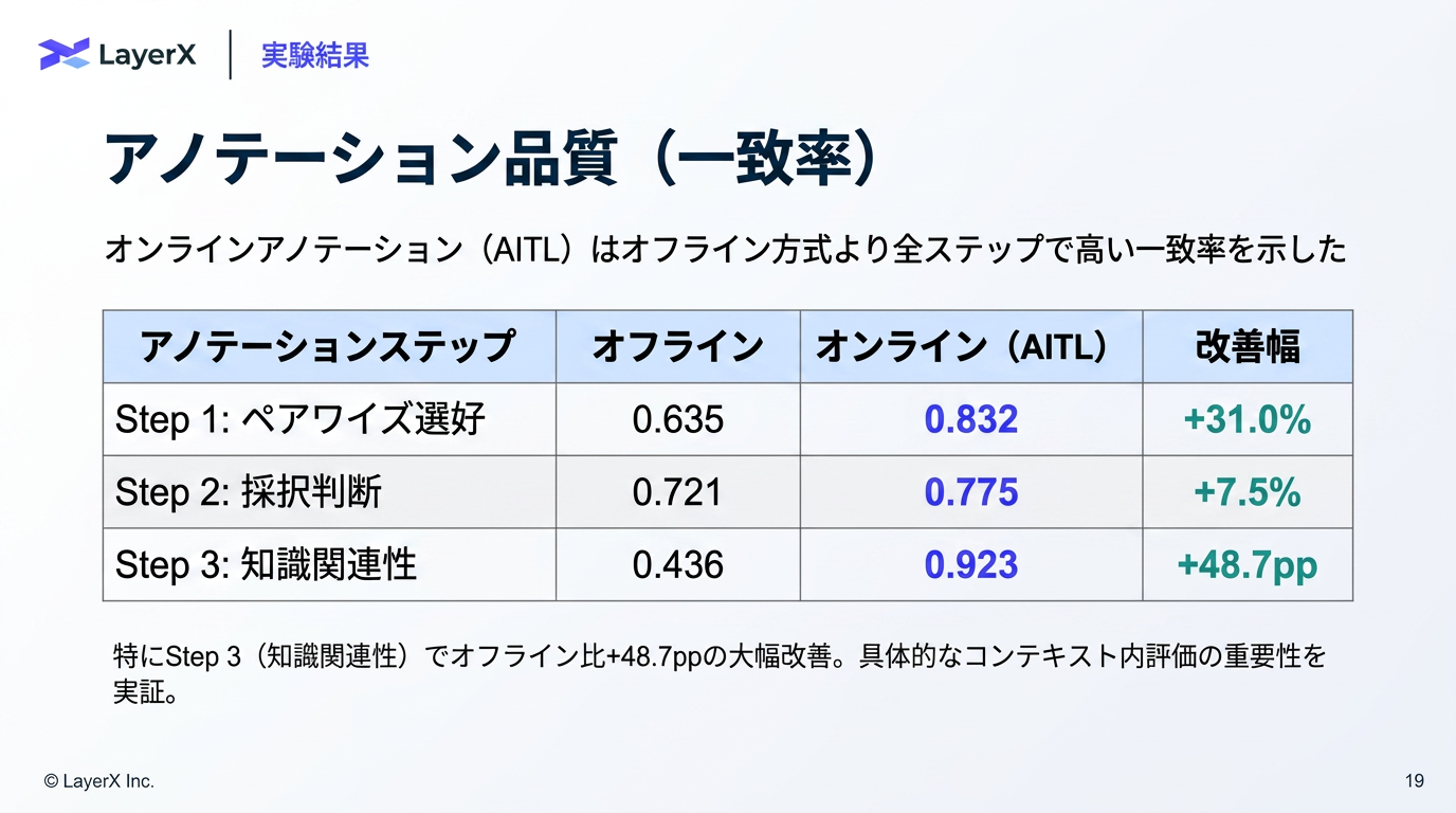 - オンラインで業務に即してアノテーションする方が思考と行動の乖離が少なくて効果的なアノテーションになった