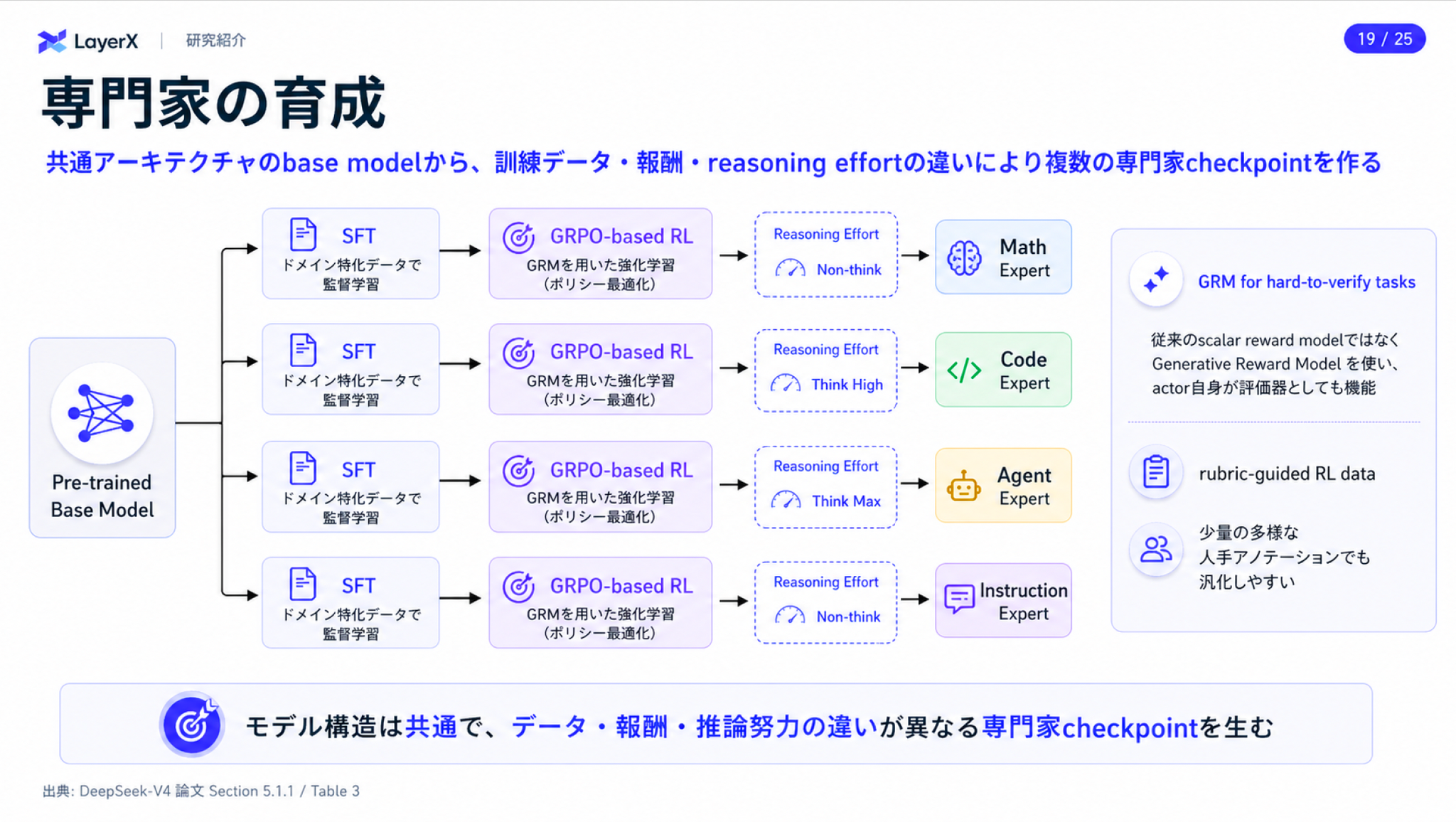 今週のTOPIC[paper] Agent-in-the-Loop: A Data Flywheel for Continuous Improvement in LLM-based Customer Support[blog]GPT-5.5 System Card[paper] Q-RAG: Long Context Multi-step Retrieval via Value-based Embedder Training[paper] Don't Retrieve, Navigate: Distilling Enterprise Knowledge into Navigable Agent Skills for QA and RAG[paper] Learning is Forgetting: LLM Training as Lossy Compression[paper] ClawBench: Can AI Agents Complete Everyday Online Tasks?[paper]Image Generators are Generalist Vision LearnersメインTOPICDeepSeek-V4:Towards Highly Efficient Million-Token Context Intelligence概要背景アーキテクチャCSA/HCAによりアテンションコストを抑えるmHC(Manifold-Constrained Hyper-Connections)Muon Optimizer学習パイプライン概要事後学習オンポリシー蒸留思考管理評価標準ベンチマーク実用ベンチマーク